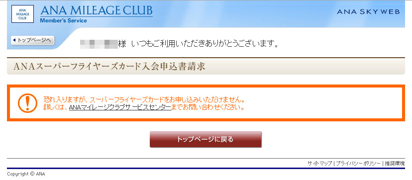 「恐れ入りますが、スーパーフライヤーズカードをお申し込みいただけません。」