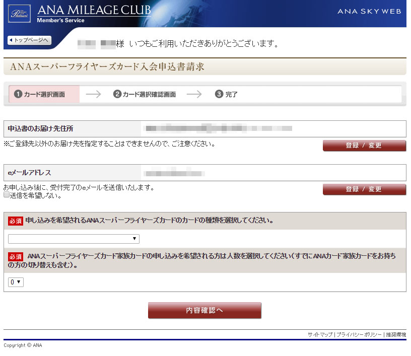 ステップ3:ANA ダイナース スーパーフライヤーズ プレミアム 申込書取り寄せ 5営業日